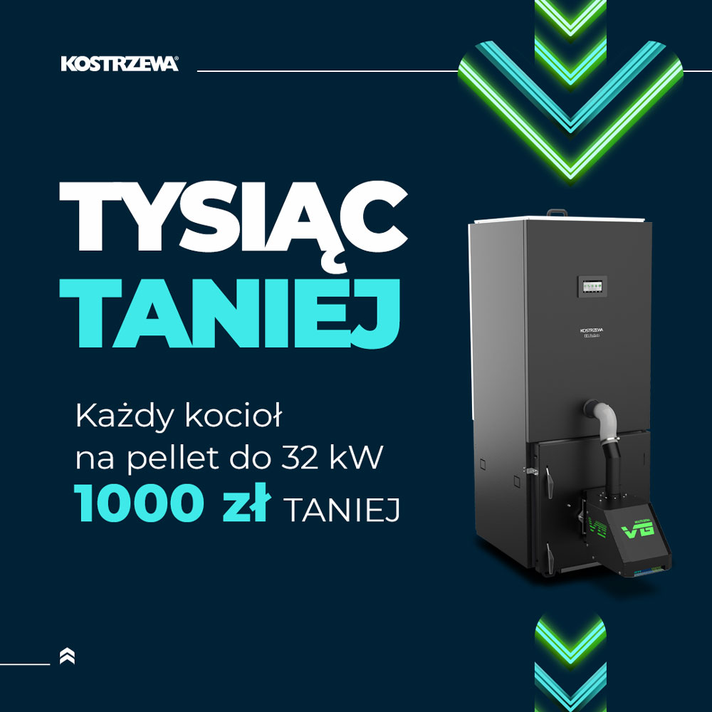 Kup teraz kocioł na pellet Kostrzewa do 32 kW i zaoszczędź 1000 zł. Zainwestuj w ekologiczne i ekonomiczne ogrzewanie dla swojego domu. Oferta ograniczona czasowo.
